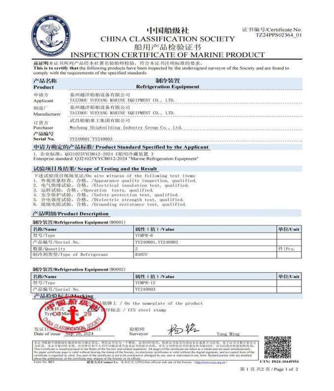 YYMPR船用冷藏裝置